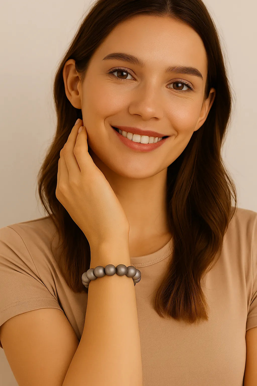 Zeitlose Eleganz in moderner Form – das 3D Wonderperlen Armband in edlem Silbergrau verzaubert mit seiner klaren Farbgebung und dem feinen Perlenschimmer. Die glänzenden Perlen reflektieren das Licht harmonisch und stehen symbolisch für Klarheit, Balance und innere Ruhe. Dank seines elastischen Designs bietet das Armband höchsten Tragekomfort und passt sich jedem Handgelenk optimal an. Ob im Alltag, im Büro oder zu besonderen Anlässen – dieses Schmuckstück ist ein vielseitiger Begleiter. In Kombination mit weiteren Wonderperlen Armbändern lassen sich elegante Kontraste und individuelle Styles kreieren.