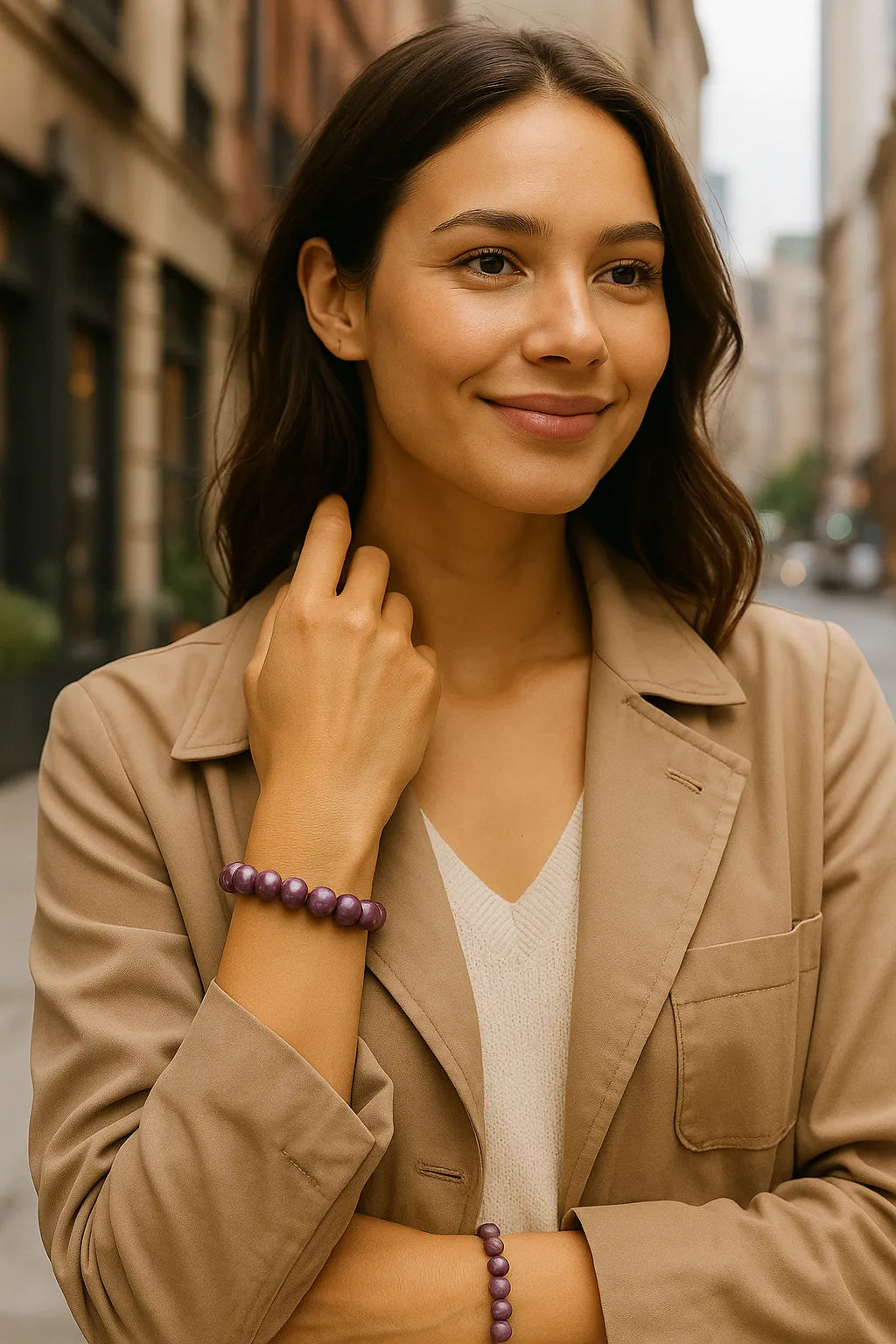Zeitlose Eleganz in moderner Form – das 3D Wonderperlen Armband in schimmerndem Lila begeistert mit seiner sanften Farbgebung und dem edlen Perlenschimmer. Die violetten Perlen reflektieren das Licht auf bezaubernde Weise und stehen symbolisch für Kreativität, Intuition und innere Ruhe. Das elastische Design sorgt für ein angenehmes Tragegefühl und macht das Armband zu einem stilvollen Begleiter – ob im Alltag, im Büro oder bei besonderen Anlässen. Kombiniert mit weiteren Wonderperlen Armbändern entstehen harmonische Farbspiele, die deinem Look eine persönliche Note verleihen.