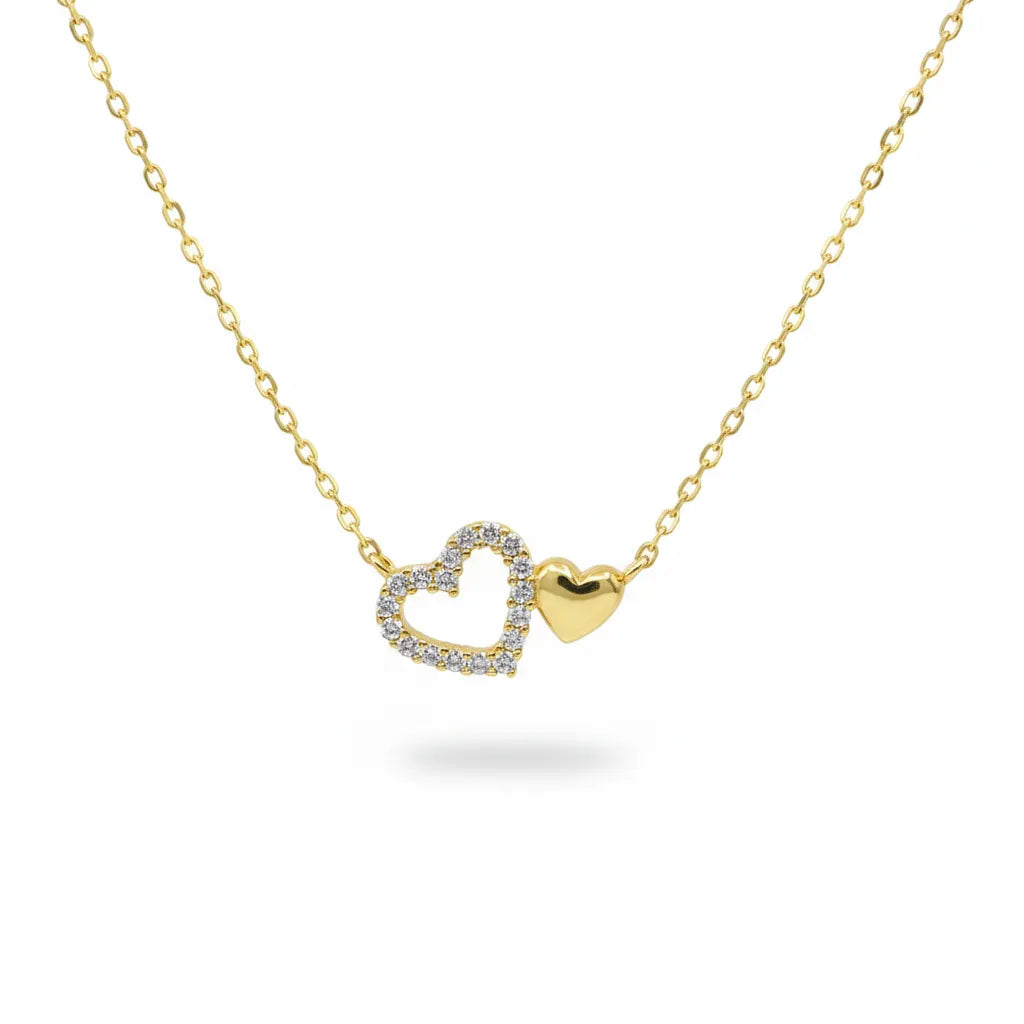 Klassische Romantik trifft auf modernen Glanz – diese Damenhalskette aus feinem 925 Sterling Silber verzaubert mit zwei liebevoll verbundenen Herzen. Ein Herz ist mit funkelnden Zirkonia besetzt, das andere glänzt schlicht und weich geformt – ein wunderschönes Symbol für Liebe, Verbundenheit und Zusammenhalt.