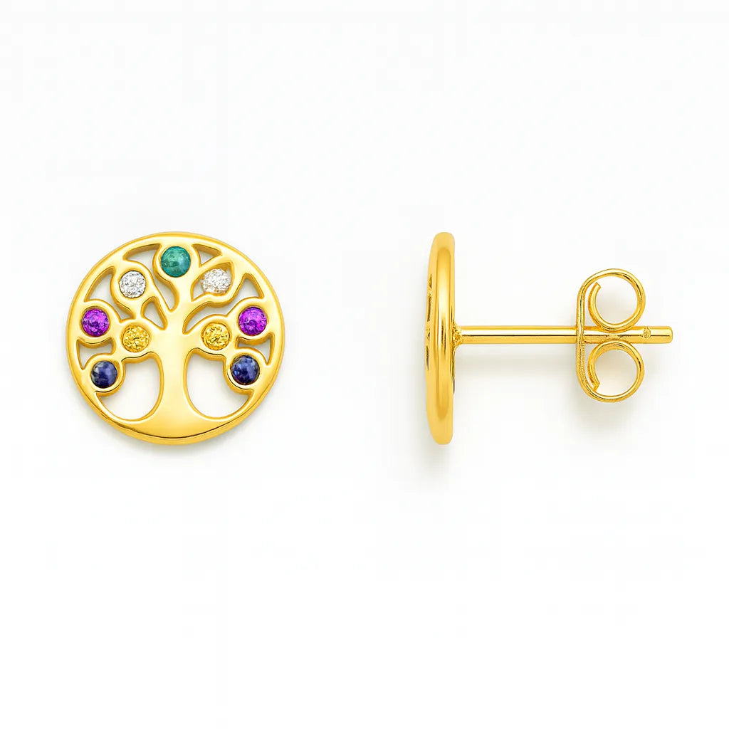 Strahlend schön und voller Symbolkraft – diese eleganten Lebensbaum-Ohrringe aus hochwertigem, vergoldetem 925 Sterling Silber vereinen stilvolle Eleganz mit moderner Farbvielfalt. Der kunstvoll gestaltete Lebensbaum symbolisiert Wachstum, Harmonie und Stärke, während die funkelnden Zirkonia-Steine in leuchtenden Farben jedem Look eine lebendige Note verleihen.