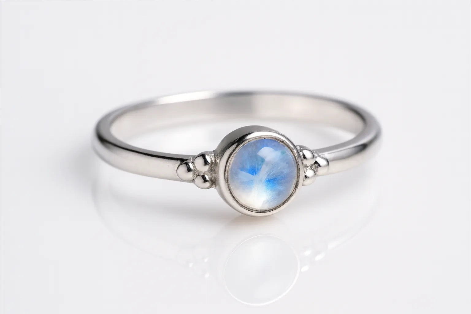 Das feminine Design mit dezenten Silberkügelchen an der Fassung verleiht dem Ring eine elegante, zugleich natürliche Ausstrahlung. Der Mondstein gilt seit Jahrhunderten als Symbol für Intuition, Weiblichkeit und emotionale Ausgeglichenheit – perfekt für Frauen, die feine Details und spirituelle Symbolik schätzen.