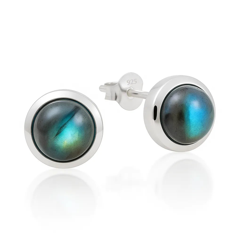 Ohrstecker - 925er Silber - Labradorit cabochon
