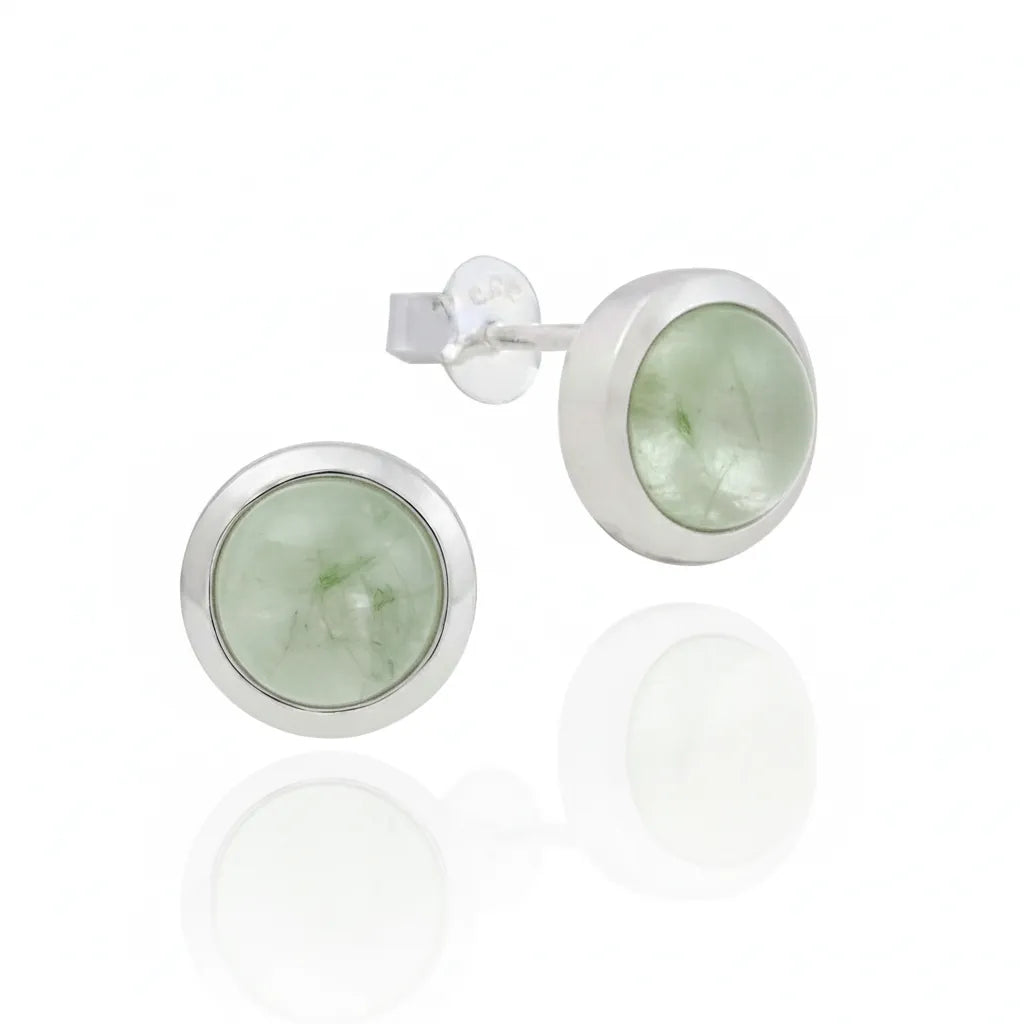 Zeitlose Eleganz in zartem Grün – die Ohrstecker aus 925er Sterlingsilber mit Prehnit-Cabochons strahlen natürliche Ruhe und edle Schlichtheit aus. Der sanft grünlich schimmernde Prehnit reflektiert das Licht auf subtile Weise und symbolisiert Harmonie, Gelassenheit und emotionale Balance. In Kombination mit dem kühlen Glanz des Silbers entsteht ein moderner, zugleich natürlicher Look, der zu jedem Anlass passt – ob im Alltag, im Büro oder zu festlichen Momenten. Diese Ohrstecker vereinen pure Ästhetik mit feiner Handwerkskunst und sind ein elegantes Statement für stilbewusste Trägerinnen.