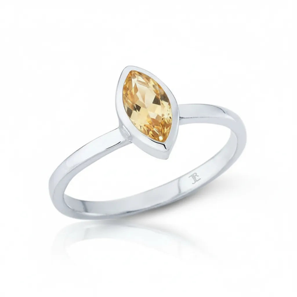 Dieser elegante Ring aus hochwertigem 925er Sterlingsilber überzeugt durch sein schlichtes, zeitloses Design. Der gelblich funkelnde Citrin-Stein ist sicher in einer modernen Zargenfassung eingefasst und verleiht dem Schmuckstück ein edles Strahlen. Kleine Silberdetails neben der Fassung unterstreichen die feminine Ausstrahlung.