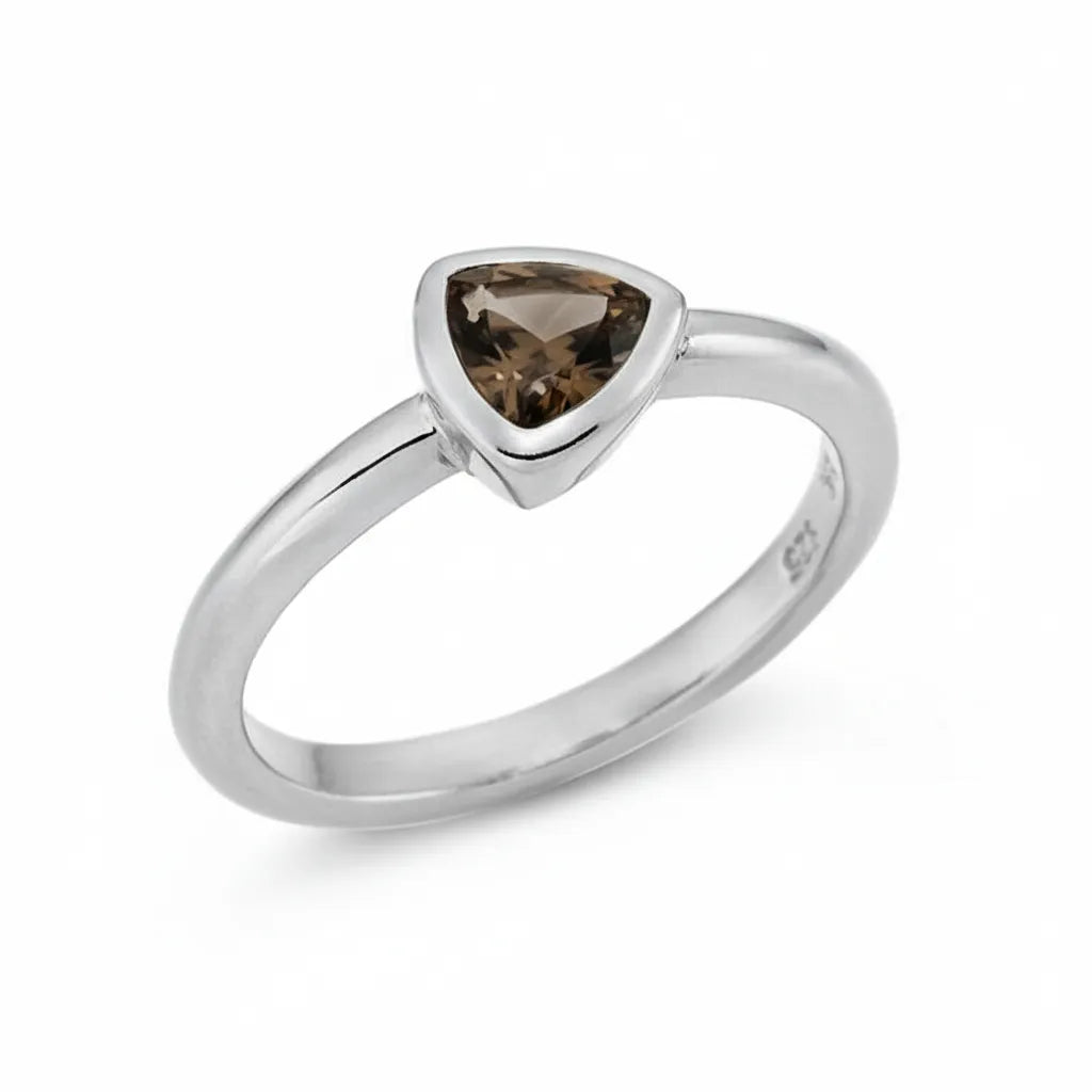 Damenring aus 925er Sterlingsilber mit Rauchquarz in Triangleform